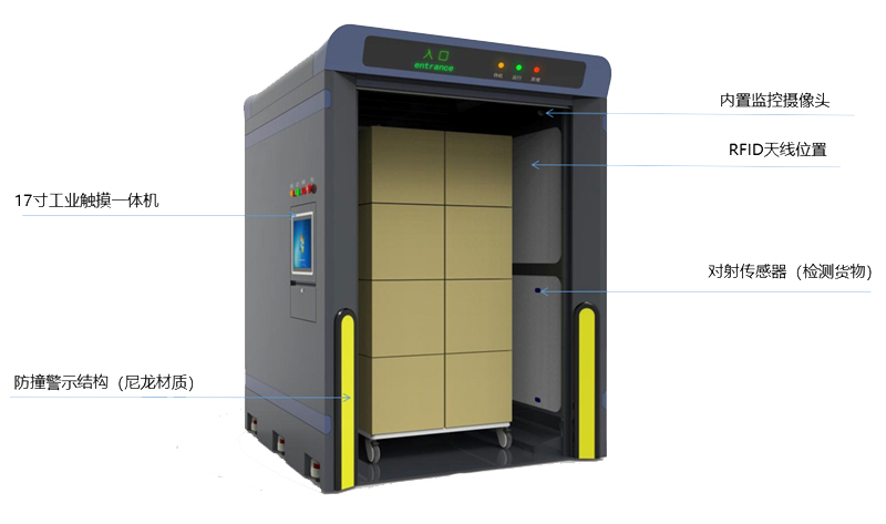 14通道機(jī)邊側(cè)防撞限位臺(tái)階設(shè)計(jì),防止推車進(jìn)入時(shí)碰撞天線及通道機(jī)內(nèi)壁。