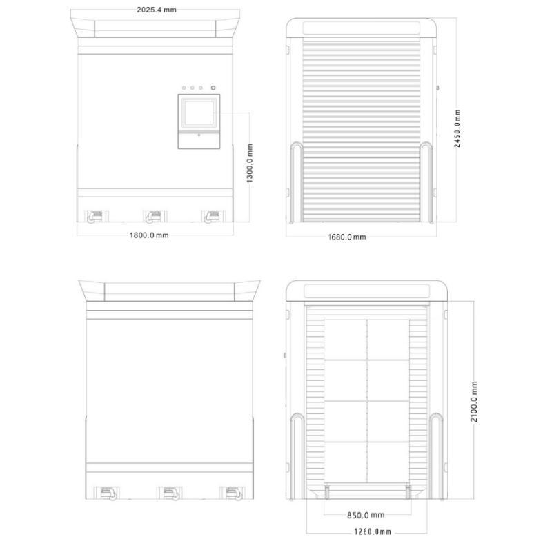 | 外部尺寸 | 1800(長(zhǎng)) x 1680 (寬)x 2450 (高)mm |