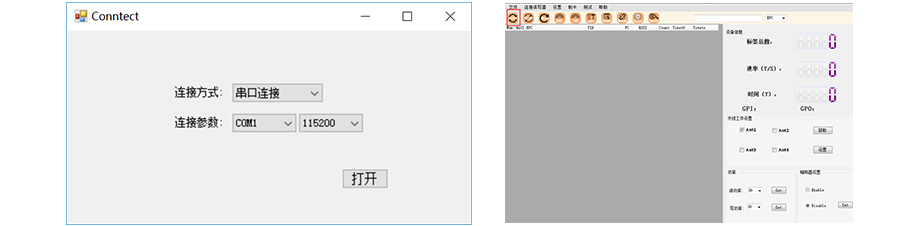 打開(kāi)ReaderDemo.exe,選擇連接讀寫(xiě)器-設(shè)備連接。